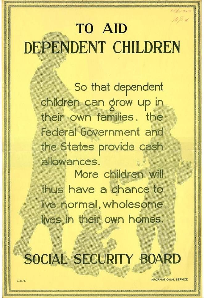 This 1940 poster reminded the public about the Aid to Dependent Children program established under the Social Security Act of 1935.